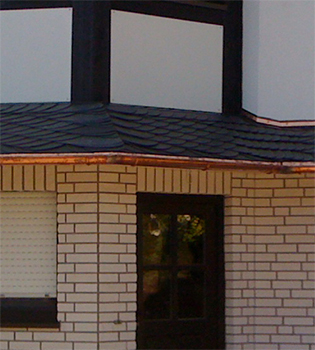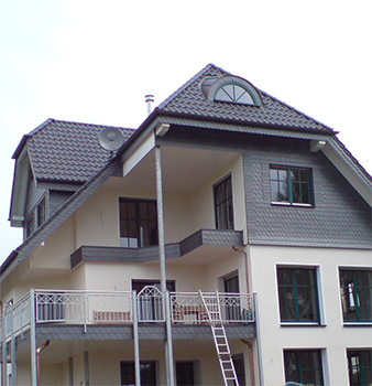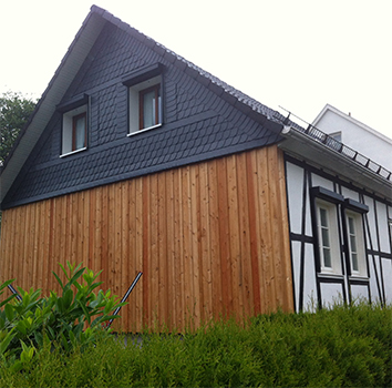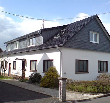 Projekt FünfanemptytextllineDachumdeckung eines Einfamilienhauses mit Verbreiterung des Dachüberstandes an den Giebeln
