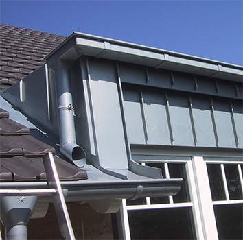 Projekt ZweianemptytextllineAnbau eines Einfamilienhauses mit Dachausstiegen in Stehfalztechnik