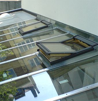 Projekt DreianemptytextllineUmbau einer ehem. Schreinerei zur Wohnung mit Glasdach im Esszimmer