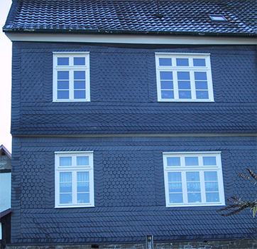 Projekt VieranemptytextllineNeuverkleidung einer Außen Fassade an einem Denkmal geschützten Wohnhaus